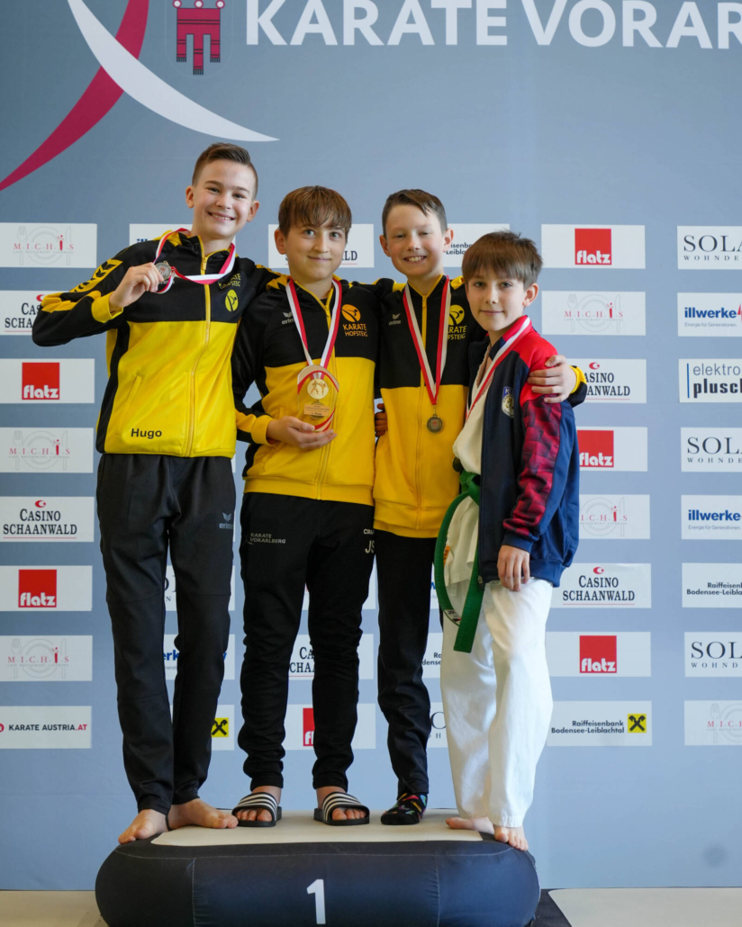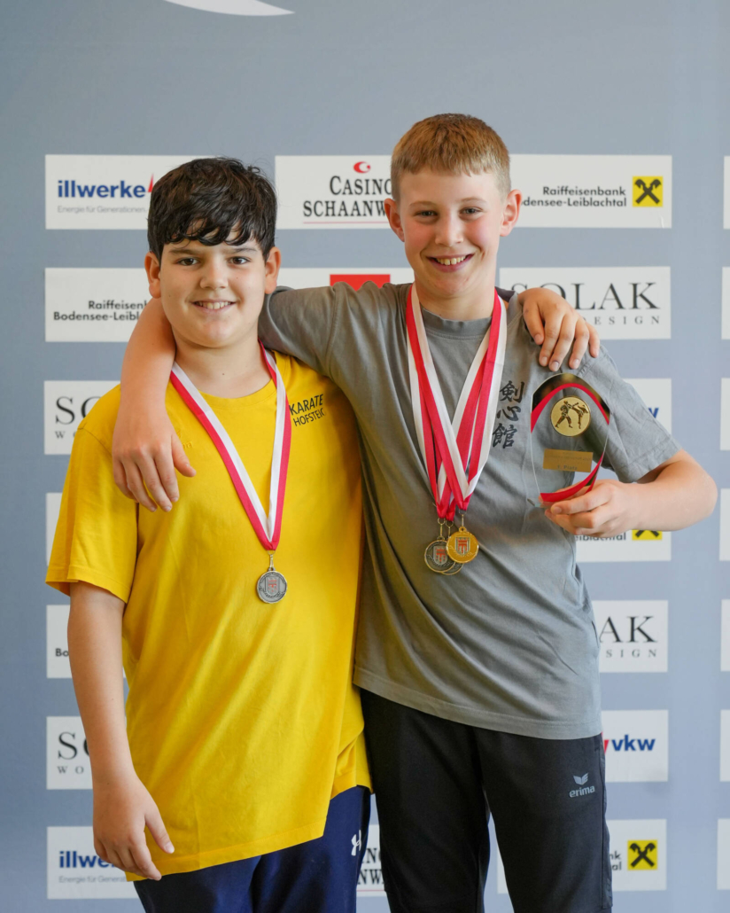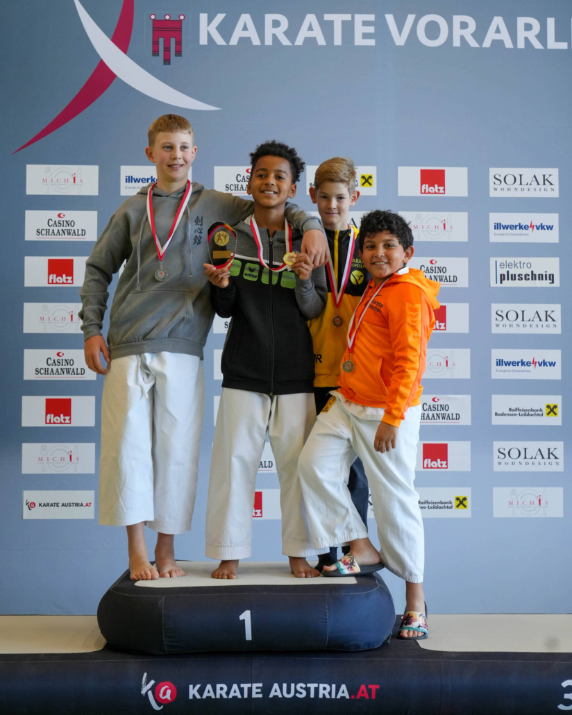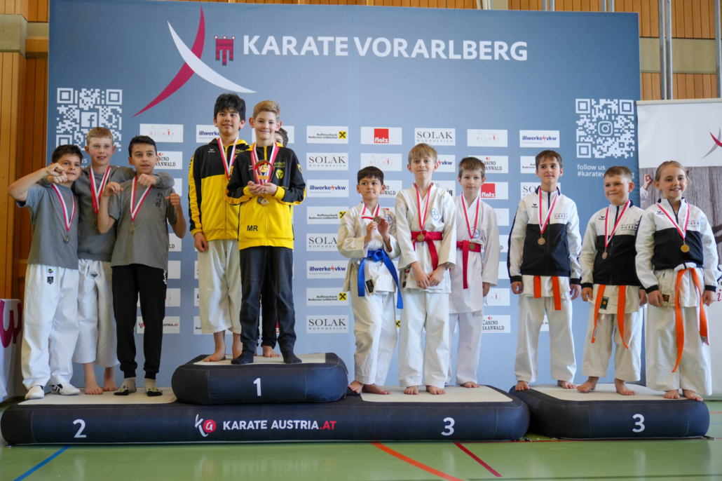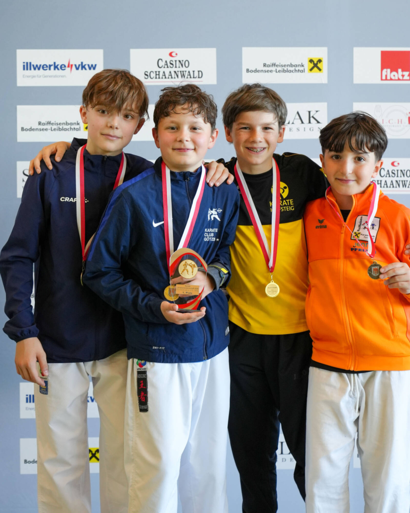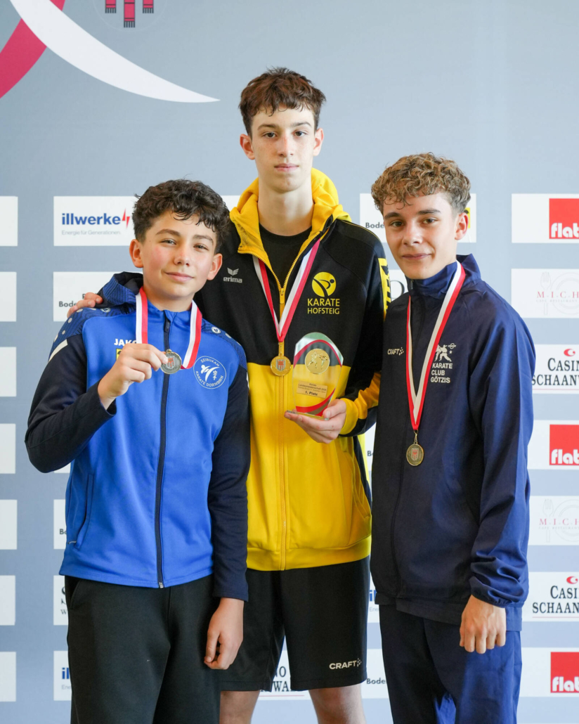 Für besondere Emotionen sorgten die rein Lauteracher Podeste. Im Kata Einzel U14 stellte der Verein mit Julian Schärmer (Gold), Hugo Buttazoni (Silber) und Lionel Bartolini (Bronze) das gesamte Podium. Ein eindrucksvolles Bild für die Qualität und Tiefe im Nachwuchsbereich.
